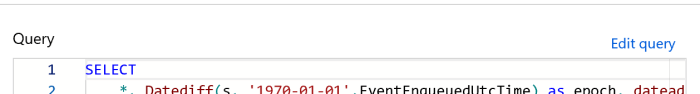 SELECT *, Datediff(s, '1970-01-01',EventEnqueuedUtcTime) as epoch, dateadd(hour,-5,EventEnqueuedUtcTime) as adjustedtime