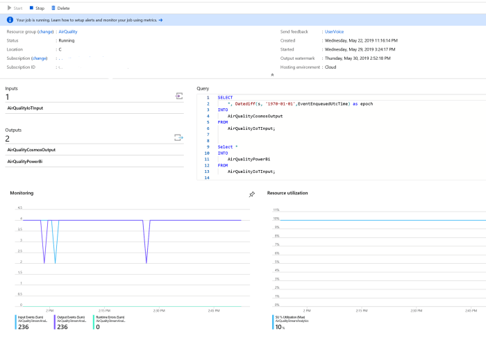 Azure IoT Air Quality Monitoring New Steam Analytics Job