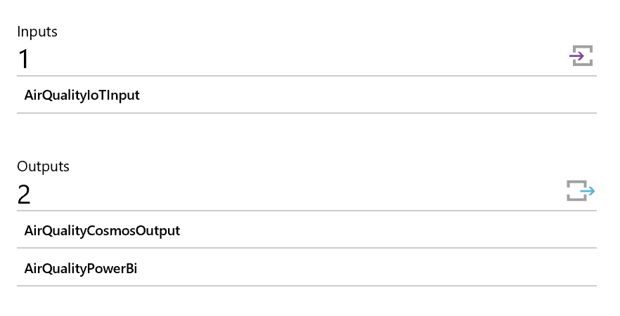 We use Azure Stream Analytics to transform and apply analytics to our air quality messages streaming into Azure IoT Hub. Steam Analytics employs SQL and JavaScript to provide an easy to use platform. With it we will ingest our IoT data and write to Power BI and Cosmos DB (a great low latency geo-distributed option for storing the JSON documents for additional application integration).
