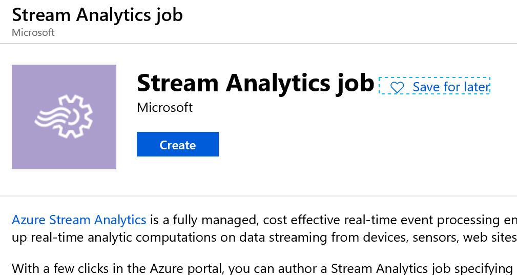 Add a new resource, Stream Analytics job.